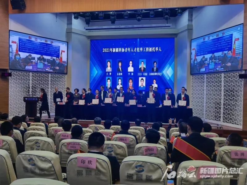 图为2021年新疆科协青年人才托举工程被托举人代表获颁荣誉证书(资料图)。石榴云/新疆日报记者 谢慧变摄