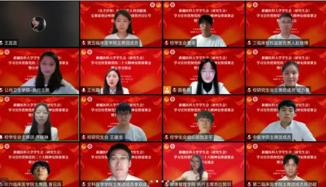11月22日,beat365学生会(研究生会)举办学习宣传贯彻党的二十大精神安排部署暨线上分享交流会。校、院两级学生会、研究生会参加了交流分享。