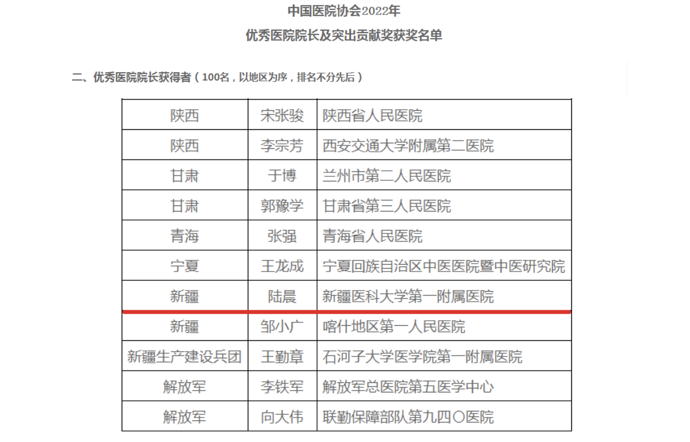 针对新疆医疗管理的热点和难点问题,陆晨院长有计划、分重点地开展基于医联体的临床路径、疾病诊断相关分组(DRG)基础与应用及其信息化研究,达到全国先进水平。从事医院管理岗位30多年,他带领医院管理团队积极参与自治区等级医院评审,推动新疆公立医院DRG评价、二级和三级公立医院绩效考核、新疆公立医院改革向纵深发展,为新疆医疗管理事业做出了重要贡献。