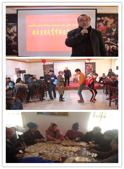 “闹元宵,月正圆,天山儿女心相连;携手并肩齐努力,家乡面貌换新颜”这是胡木旦村元宵节联谊会主持人纳毕江·马赫穆德的开场白。这次元宵节联谊活动驻村工作队策划了好几天呢,就是以营造传统节日氛围、突出交往互动为主线,用互动座谈、趣味游戏和文艺节目的方式宣传党的政策、介绍传统文化,鼓励大家的交流、交往。