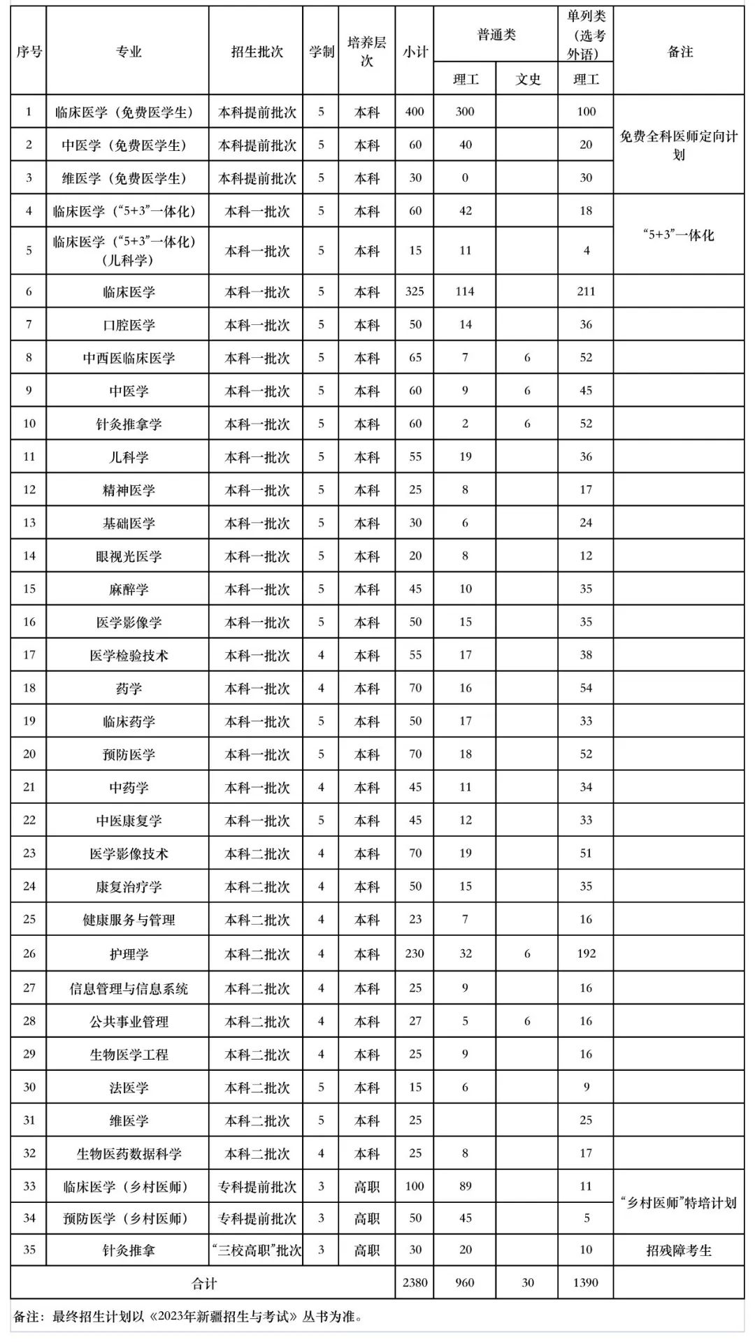 beat365中文在线官网2023年疆内招生计划