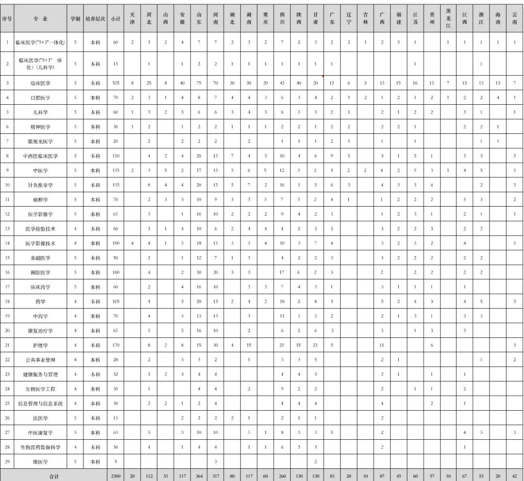 beat365中文在线官网2023年疆外各省市分专业招生计划