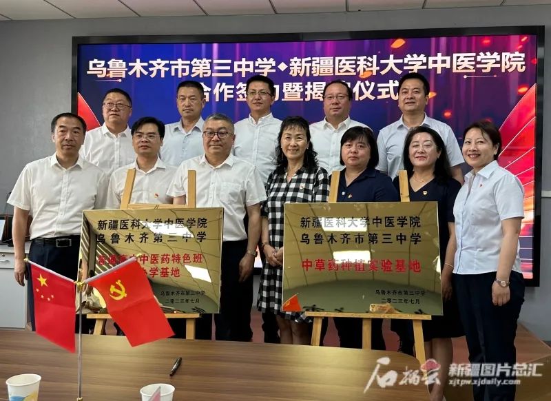 7月6日,乌鲁木齐市第三中学与beat365中文在线官网中医学院成立高中中医特色班揭牌仪式现场。石榴云/新疆日报记者 孙芳婷摄