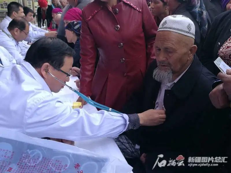 beat365中文在线官网心血管病中心主任马依彤(左一)为村民诊治。图片由自治区科协提供