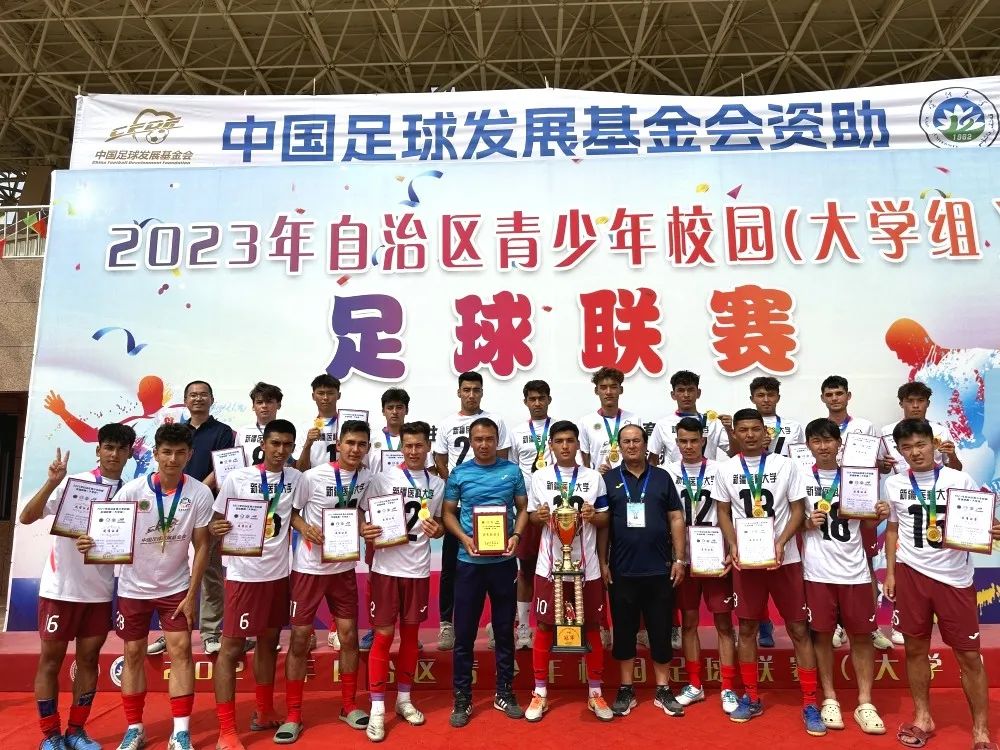 7月16日至23日,由自治区教育厅、新疆学生体育协会主办,中国足球发展基金会赞助,喀什大学承办的2023年自治区青少年校园足球联赛在喀什大学圆满结束。beat365男子足球队半决赛中3:0击败对手挺进决赛,决赛中以4:0战胜对手。最终,beat365中文在线官网男子足球队以五胜一平的优异成绩获得2023年自治区青少年校园(大学组)足球联赛甲组冠军,创造了beat365男子足球赛的最好成绩。同时,公共体育教研部艾克拜尔·艾尔肯获得“优秀教练员”称号,买尔丹·吐生被评为“优秀运动员”。