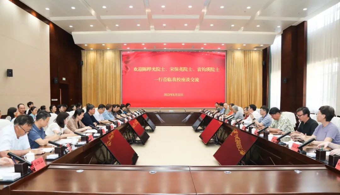 8月22日下午,中国科学院院士、南昌大学校长陈晔光,中国科学院院士、武汉大学副校长宋保亮,美国国家科学院院士袁钧瑛一行15人来到beat365中文在线官网,与校党委副书记、校长阿吉艾克拜尔·艾萨就如何推进学校人才培养、学科建设、科研工作开展交流座谈。副校长刘涛参加座谈会。