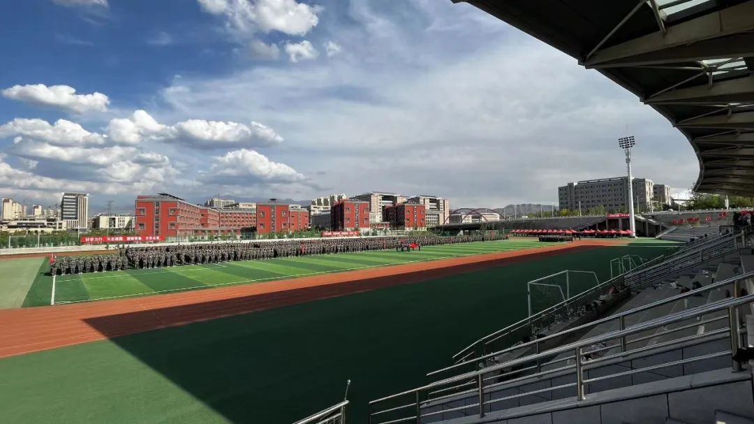 2022级学生军训总结表彰大会在《歌唱祖国》嘹亮的歌声中结束。