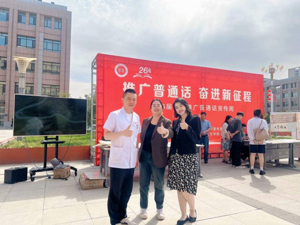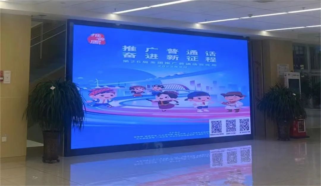 beat365积极利用各宣传平台,在运动场、教学楼、图书馆等场所持续播放推普周公益宣传片和公益广告,营造良好的宣传氛围。