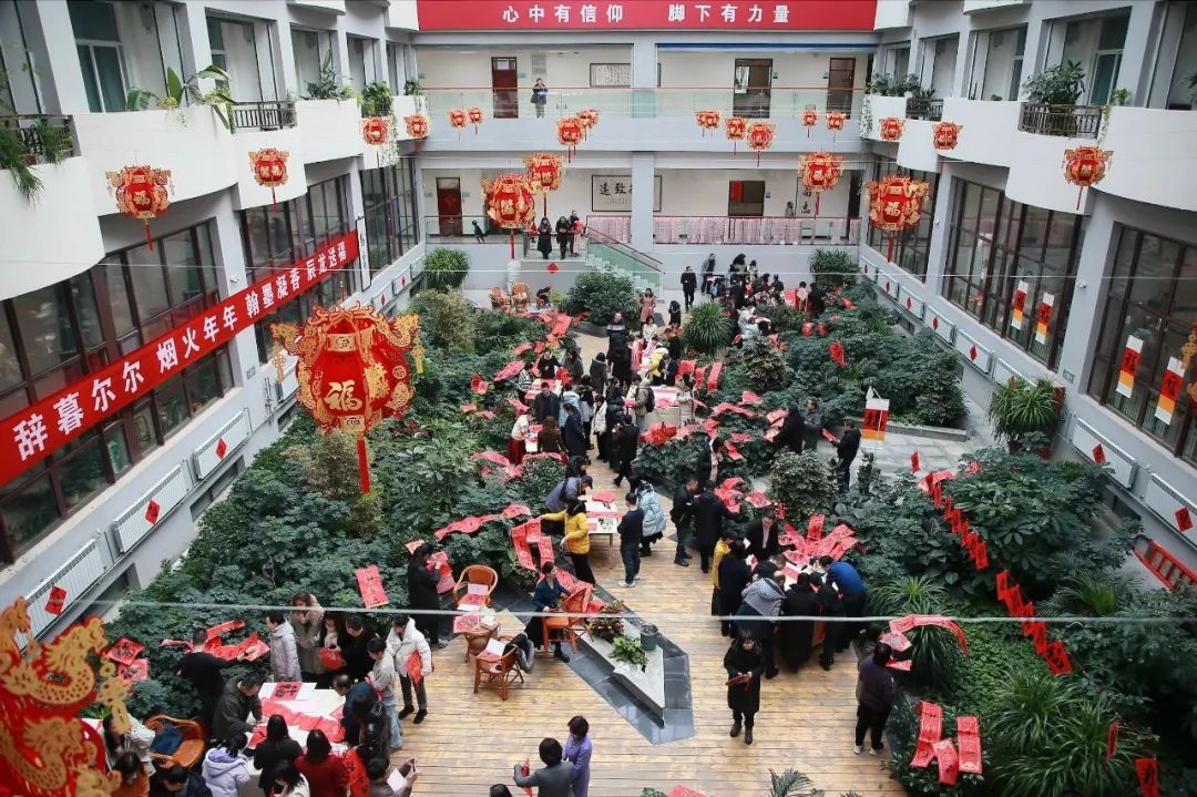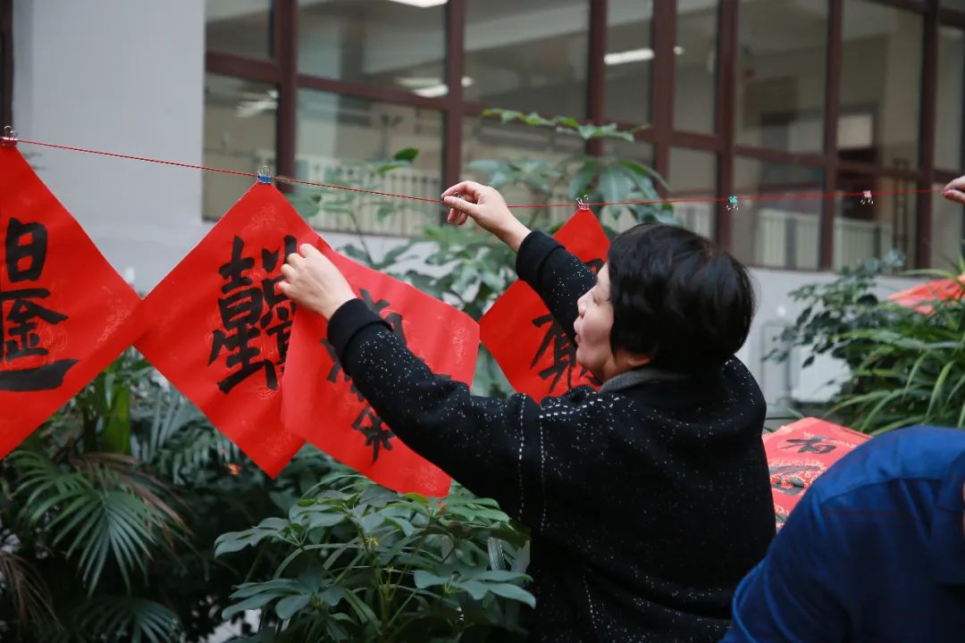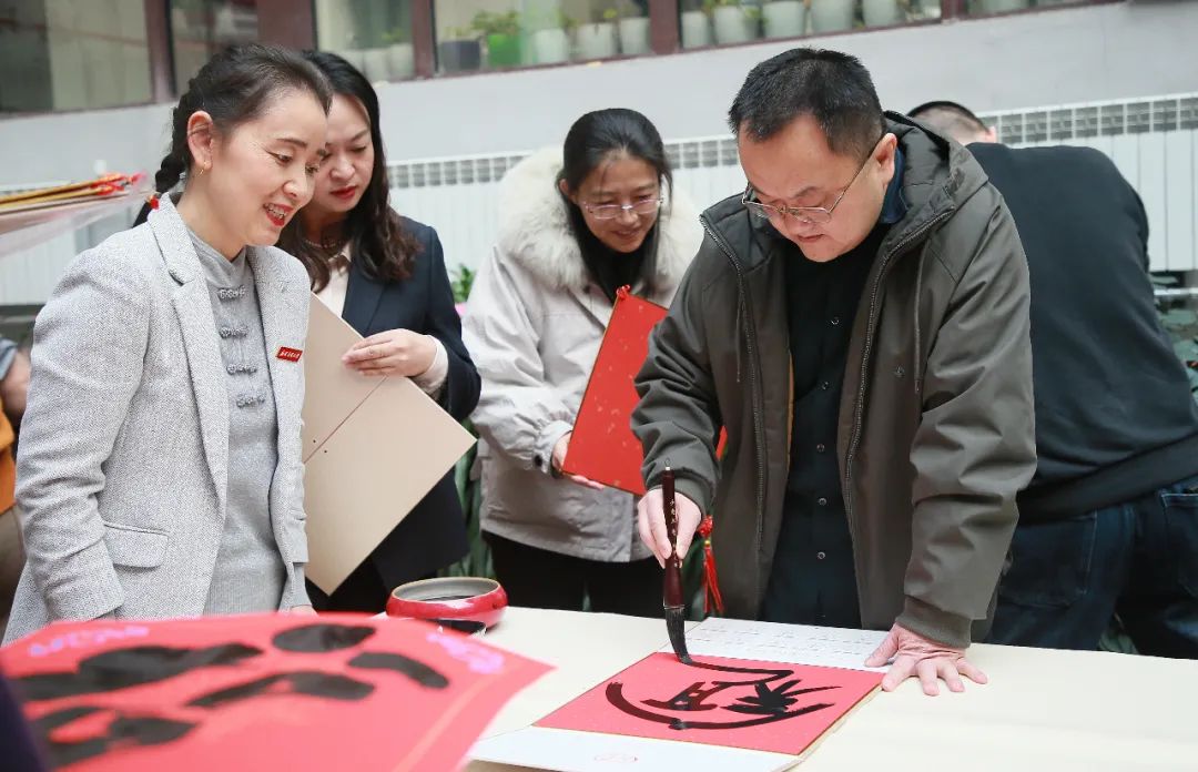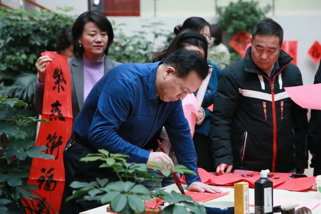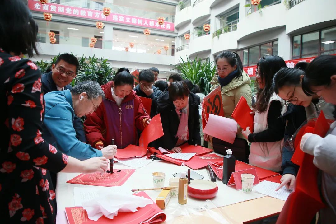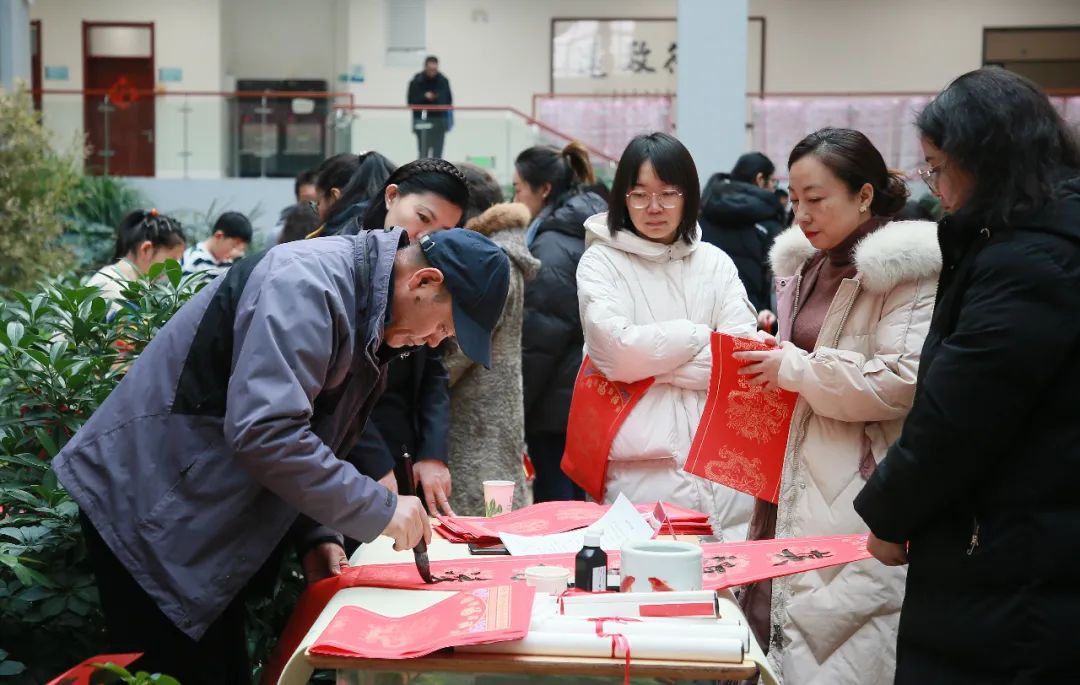 知名书法家李学文、杨克俭、蔺学雄 、高洪泉、吴发林、杨小仟、杜建军等为教职工们现场写春联、送福字