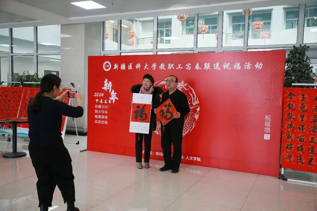 得到书法家亲笔书写的春联和福字,公共体育教研部的阿布都热扎克·买买提老师高兴地说:“春联是中国人欢度春节的重要标志,通过本次活动也是体现了咱们学校对中华优秀传统文化的重视,是学校对广大教职工的一份最诚挚祝福”。马克思主义学院的窦开泰老师说到:“这次活动非常有意义,让我们感到很温暖,体现了大学非常重视中华优秀传统文化,我也给家里写了几幅对联和福字,希望新的一年,beat365中文在线官网蒸蒸日上、越来越好。”