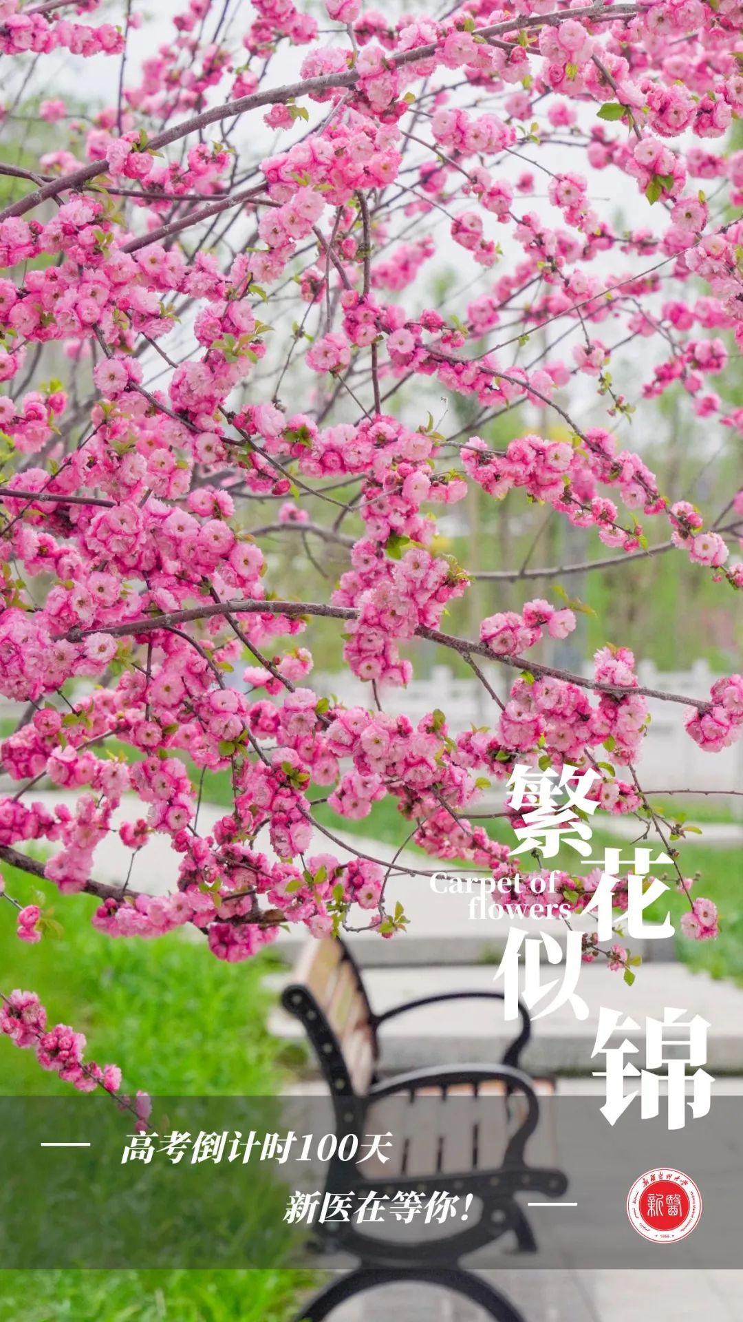 十余载寒窗苦读已走过,百日冲刺又有何惧?愿学弟学妹们百日之后持将五色笔,夺取锦标名!高考必胜,我在新医大等你!