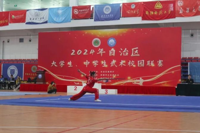 本次自治区大学生武术校园联赛是2024年阳光体育赛事的第一项赛事,分为大学生甲组、乙组和中学生组三个组别。比赛项目划分为拳术类、短器械类、长器械类及各式太极拳、太极器械、传统拳术和传统器械等60个单项、6个集体项目,共有全疆各级各类学校的39支代表队323名运动员参加。