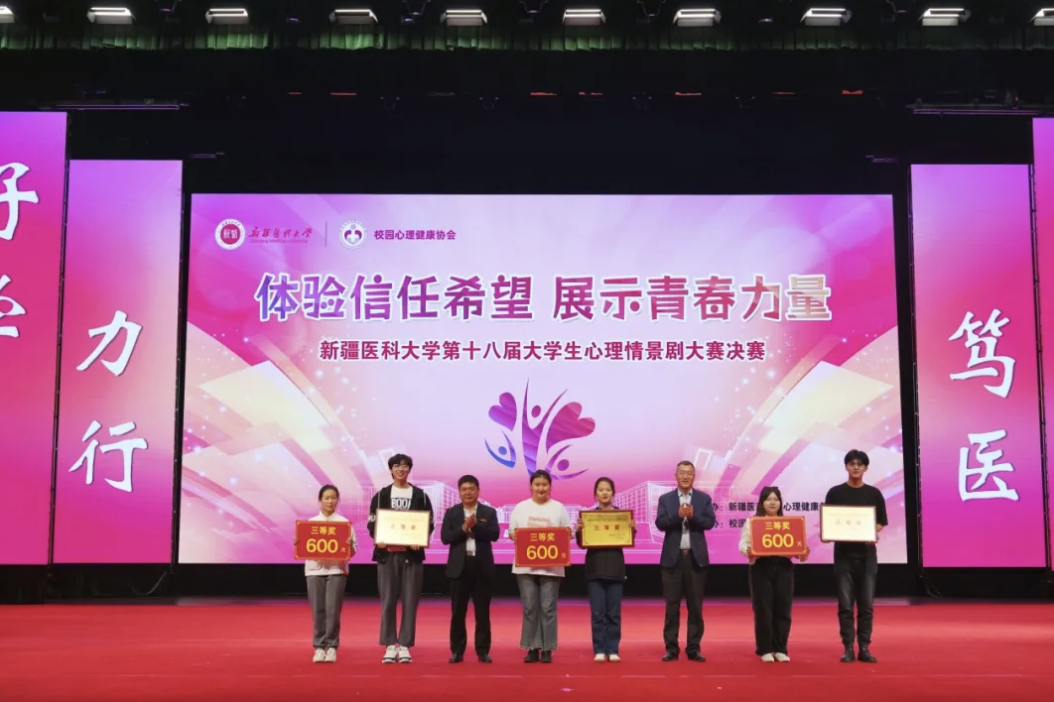 决赛中,新疆农业大学心理中心专职教师田金艳老师,新疆工程学院心理健康教育与辅导中心主任张艳梅老师,中国心理学会临床与咨询心理学注册心理师李湘老师,乌鲁木齐市一中心理教育指导中心主任李薇老师,新疆艺术学院表演系教师、新疆艺术家协会影视部主任高月老师担任大赛评委。来看获奖名单: