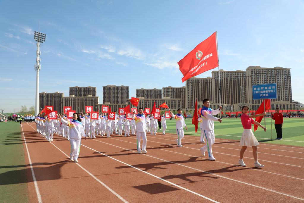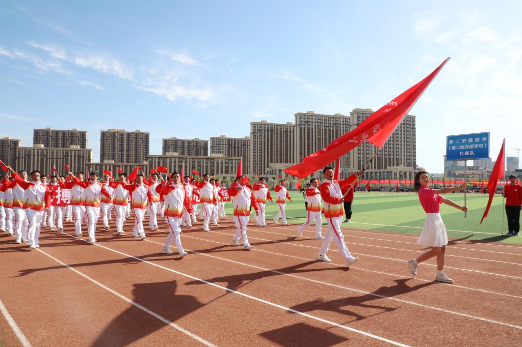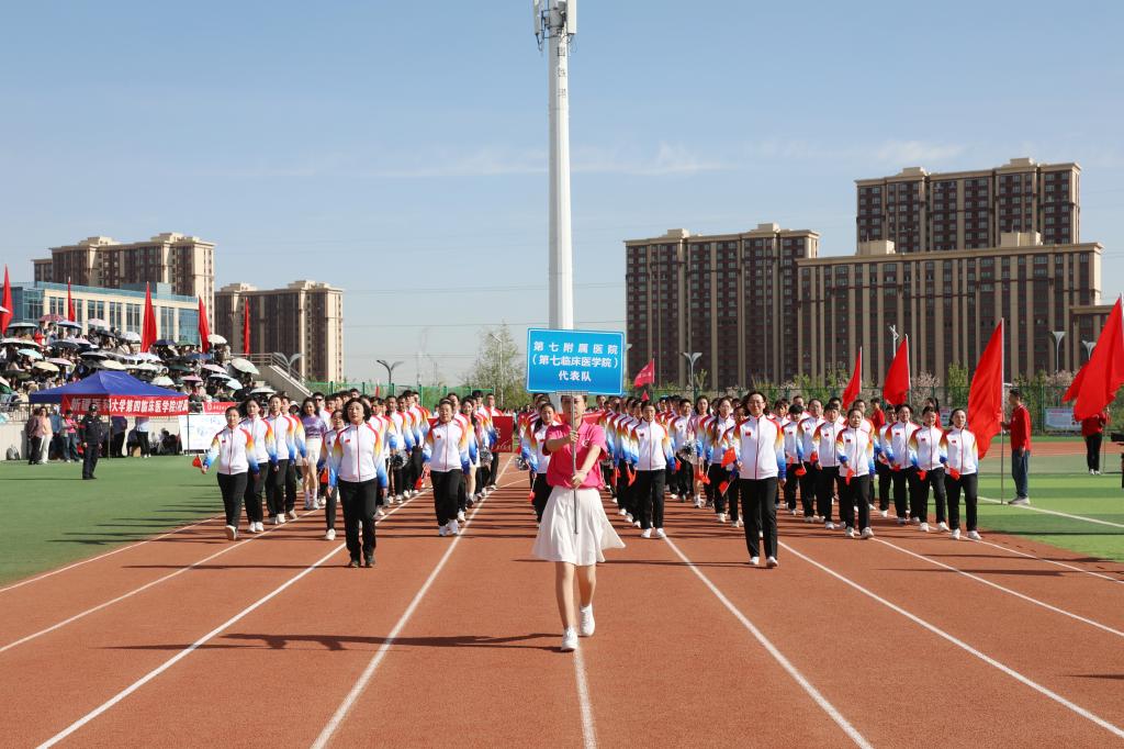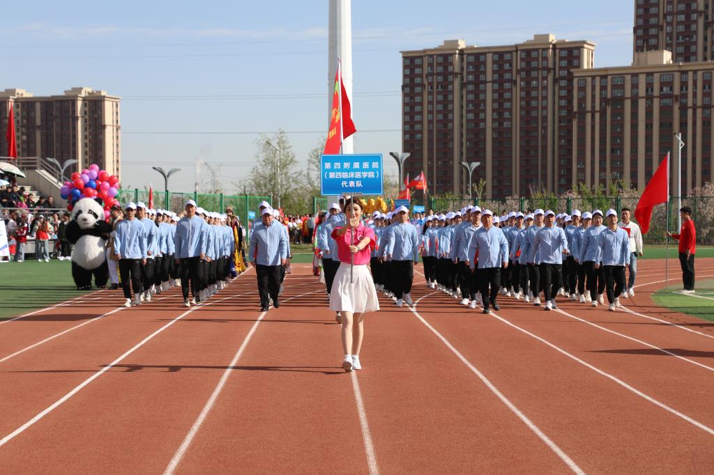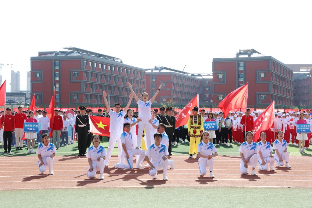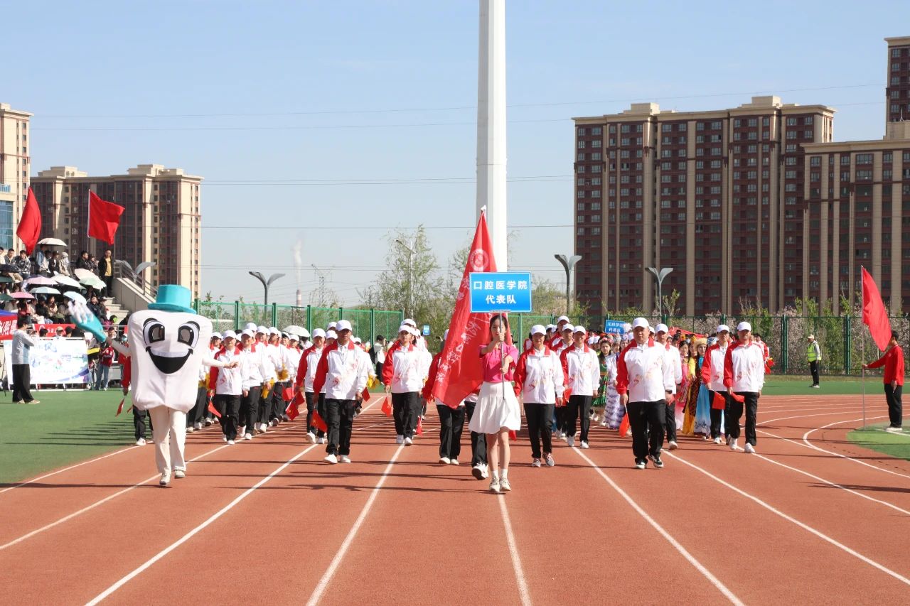 在充满创意的入场式中24个教师和学生运动员方队英姿飒爽、激情澎湃他们昂首阔步走过主席台用整齐的步伐和嘹亮的口号展示着蓬勃向上的新医风采奏响了铿锵豪迈的新医乐章向奋战在教学科研临床一线的全体教职员工致敬为青春朝气的新医学子点赞!