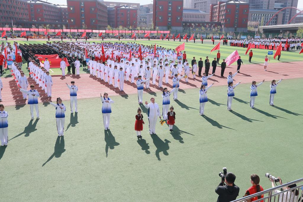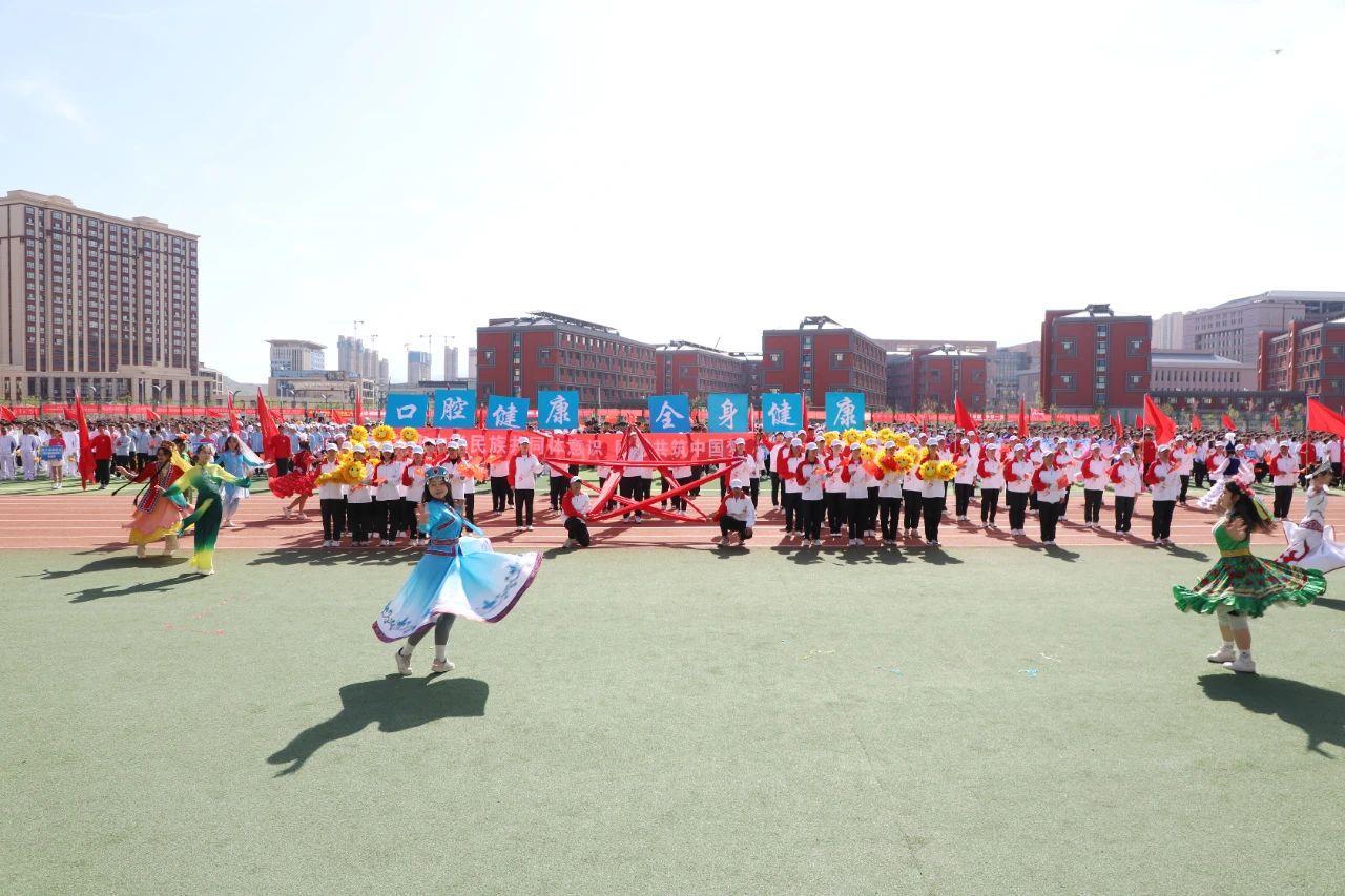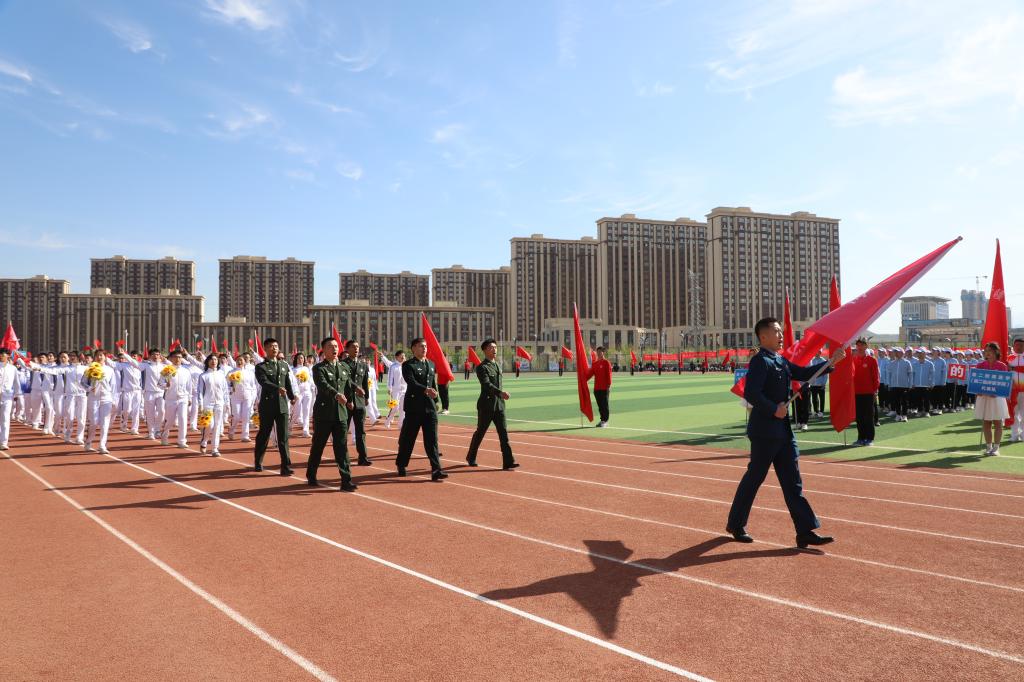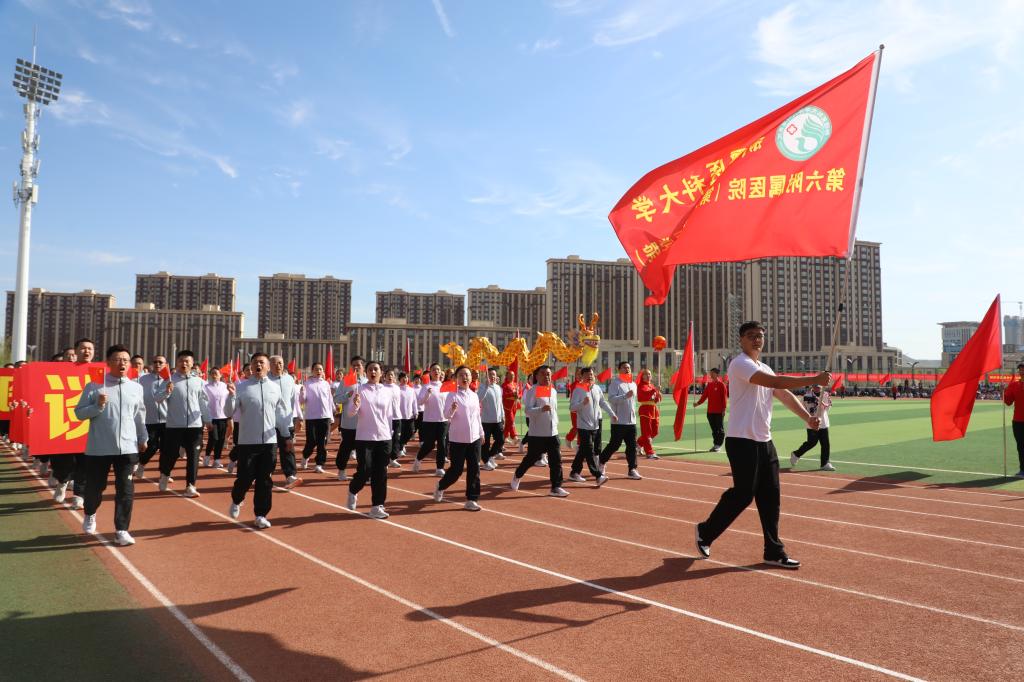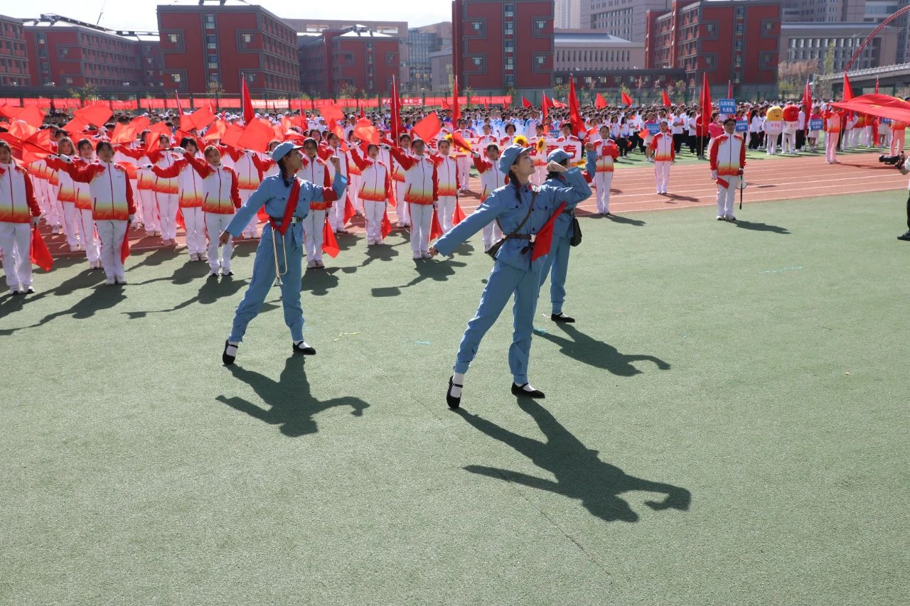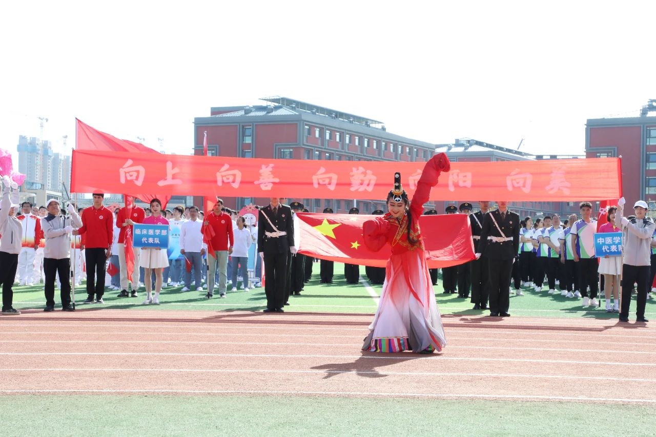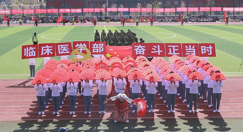 由60名学生代表组成的红旗方阵如似火的年华如胜利的凯歌象征着新时代青年昂扬奋进的精神面貌走出新时代新医人的青春与活力