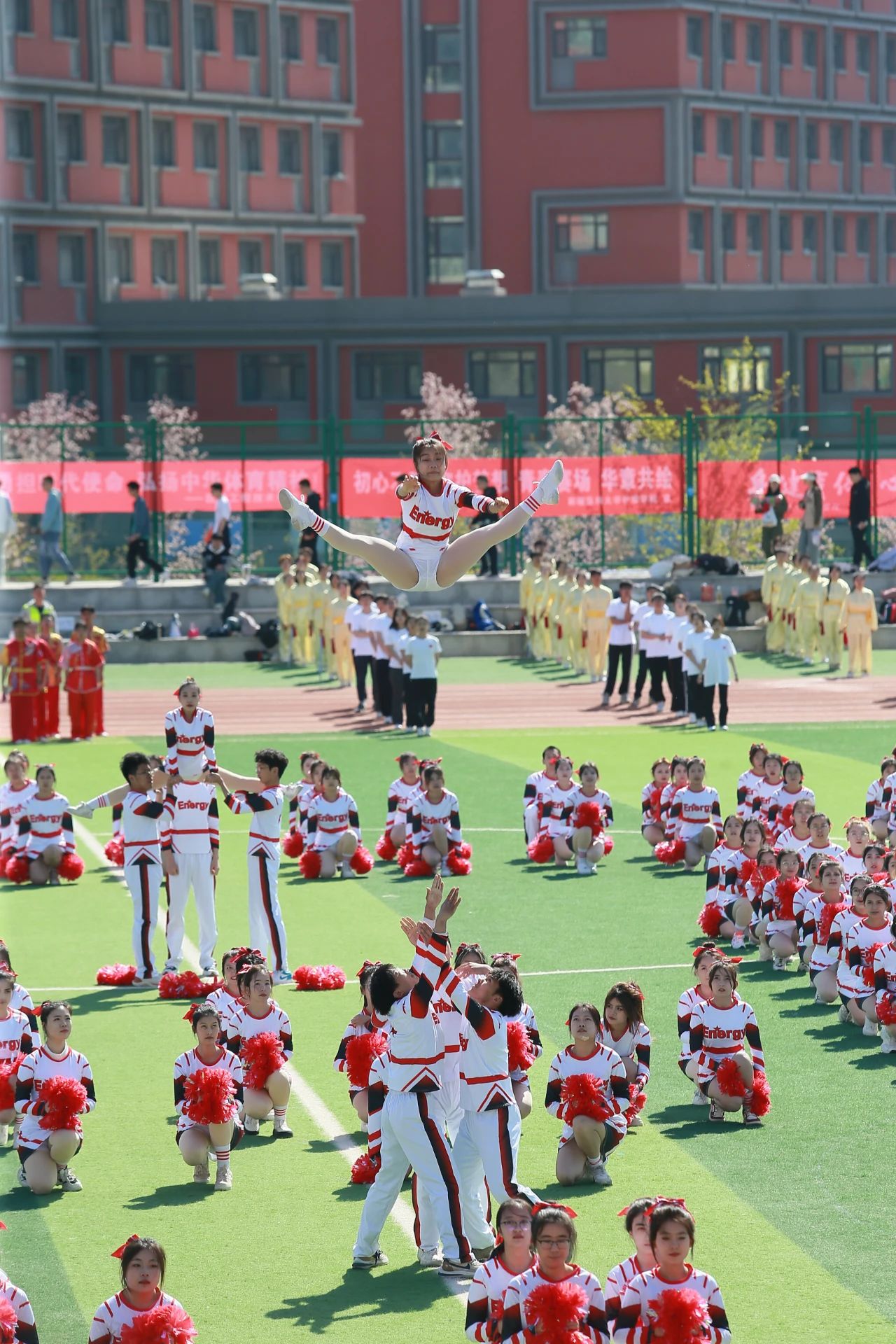 啦啦队舞蹈以“新医的风采”“传承的力量”“伟大的祖国”为主线