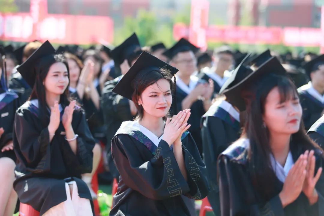 毕业典礼在全体共唱《毕业歌》的昂扬进取的旋律中结束,祝福毕业生们一路高歌、壮志远航!