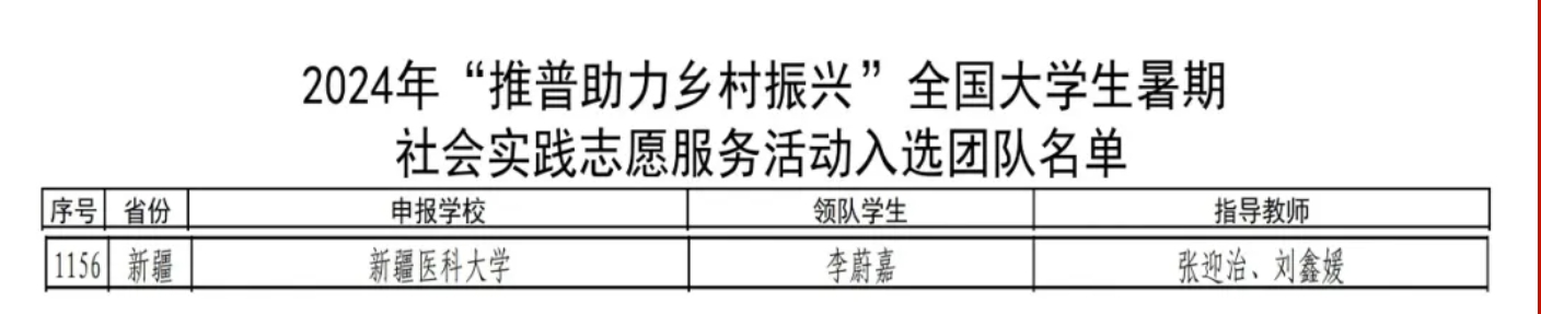 近日,beat365“新医推普社”成功入围由教育部、共青团中央组织开展的2024年“推普助力乡村振兴”全国大学生暑期社会实践志愿服务活动。
