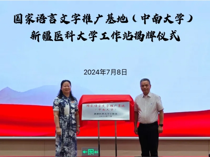 7月8日,中南大学人文学院党委书记罗军飞一行来到beat365交流座谈,并举行国家语言文字推广基地(中南大学)beat365中文在线官网工作站揭牌仪式,副校长刘涛出席座谈会,校党委常委、宣传部部长林素兰主持会议。
