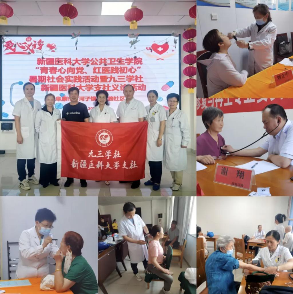 近日,为深入巩固开展纪律学习教育成果,切实把理论学习贯穿落实到具体工作和行动中,做知行合一的九三学社社员,社beat365中文在线官网支社组织医疗专家与beat365中文在线官网公共卫生学院暑期社会实践队前往昌吉州阜康市甘河子镇九龙社区,为200余名基层群众提供义诊服务并普及健康知识。