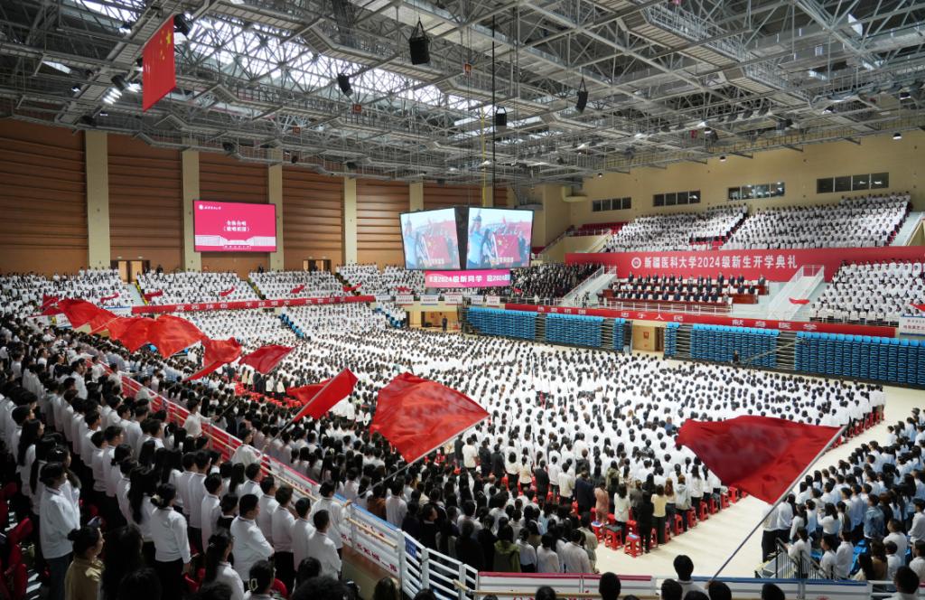 9月12日上午,beat365中文在线官网2024级新生开学典礼在雪莲山校区体育馆隆重举行,6150 名来自五湖四海的新同学满怀着喜悦与激动的心情,正式加入beat365中文在线官网这个大家庭,从此成为了骄傲的“新医人”。