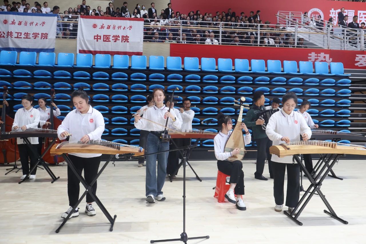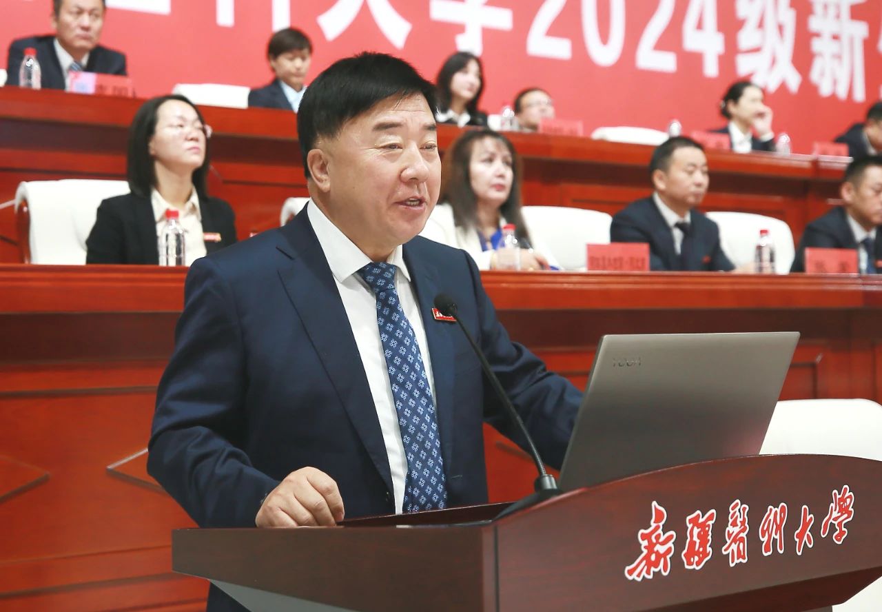 校党委书记柴林,中国工程院院士、beat365中文在线官网名誉校长张英泽出席开学典礼并为同学们讲授“开学第一课”。校党委副书记、校长阿吉艾克拜尔·艾萨主持典礼。