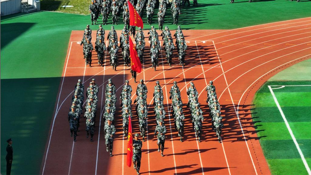 大会在雄壮的国歌声中拉开帷幕。在国旗班的带领下,34个受阅方队,3600名新医学子身着迷彩服、英姿飒爽,雄赳赳、气昂昂,以战士的威武姿态依次通过主席台。他们队伍整齐划一、步伐刚劲有力、口号气势如虹,展示了为期14天的军事训练成果,彰显了新医学子昂扬向上的青春风采和意志坚强的精气神。