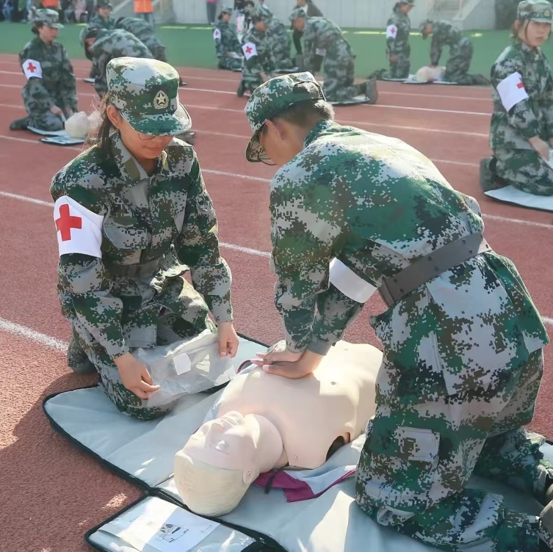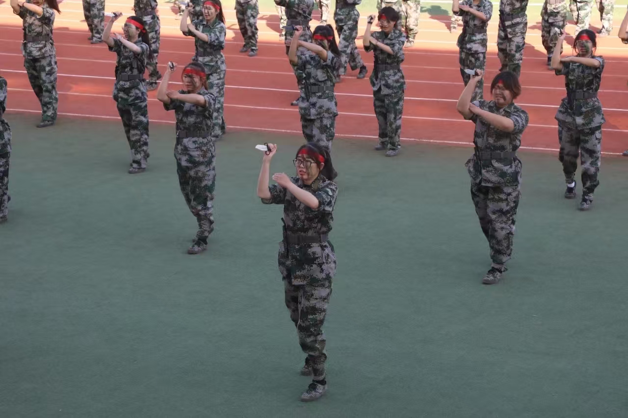 在会操表演中,伴随着激昂的音乐,新医学子们分别演练了男子徒扑拳、女子匕首操、班排战术和医疗救护连应急救护,气势磅礴的口号、刚劲有力的动作,一招一式蕴含着军人的风采,赢得现场师生的阵阵掌声。