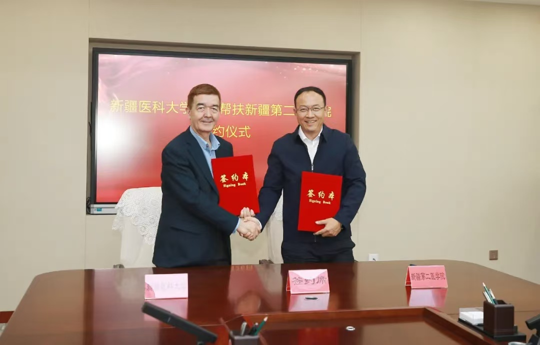 会上,beat365中文在线官网党委副书记、校长阿吉艾克拜尔•艾萨和新疆第二医学院党委副书记、校长李建光代表两校签订了《beat365中文在线官网对口帮扶新疆第二医学院协议书》,明确了帮扶内容、时间期限及各项保障措施。beat365中文在线官网校领导刘涛,新疆第二医学院校领导徐培兰、王咏剑及beat365中文在线官网有关职能部门、学院负责人参加上述活动。