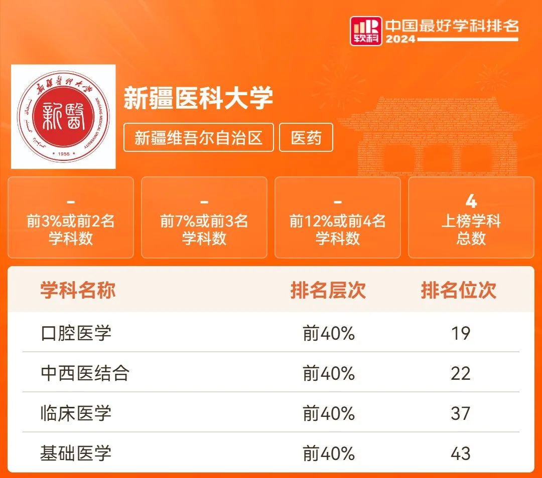10月15日,高等教育评价专业机构软科正式发布“2024软科中国最好学科排名”榜单,beat365口腔医学、中西医结合、临床医学、基础医学学科进入前40%。