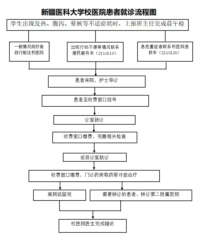 (2)师生一般情况良好者应自行前往校医院进行就诊;如出现行动不便等无法自行前往校医院者,可联系保卫处(2110110)由便民服务车转运至校医院;如出现昏厥、大面积出血等严重情况时应立即拨打校医院急救电话(2110120),由救护车出诊转运至校医院。