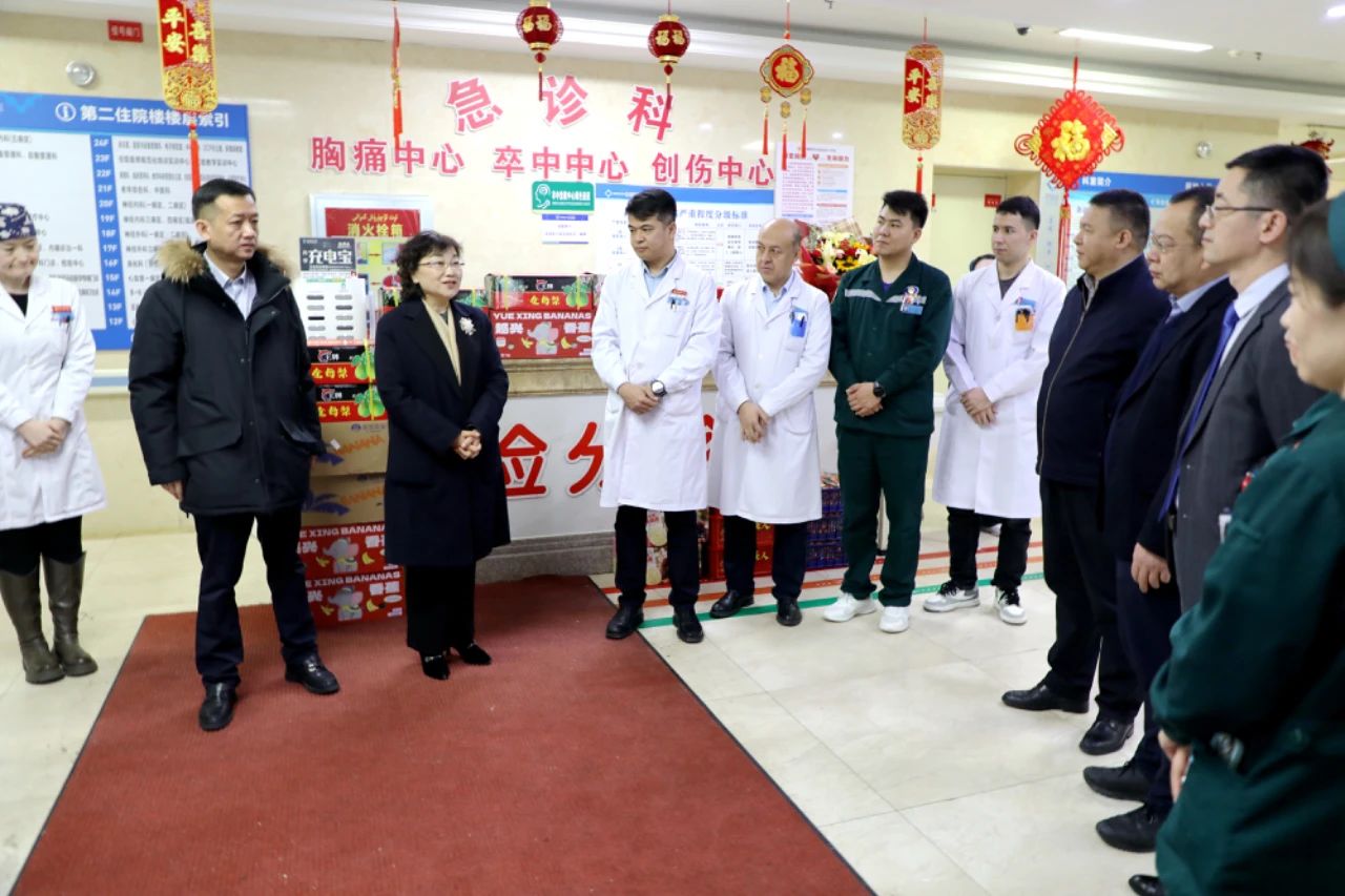 校党委书记柴林,校党委常委、副校长木胡牙提·乌拉斯汉慰问第四附属医院(第四临床医学院)在岗医护人员