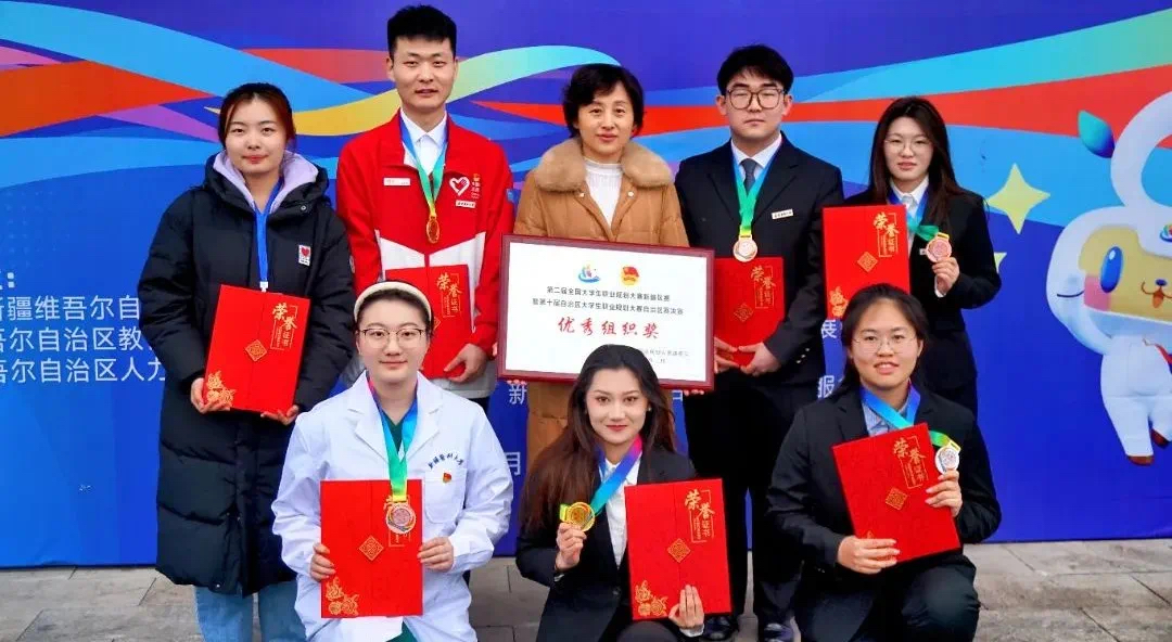 3月7日,第二届全国大学生职业规划大赛新疆区赛暨第十届自治区大学生职业规划大赛自治区赛决赛结束。beat365中文在线官网选拔参赛的7名选手全部获奖,勇夺金奖2项、银奖1项、铜奖3项、优秀奖1项,学校荣获“优秀组织奖”。