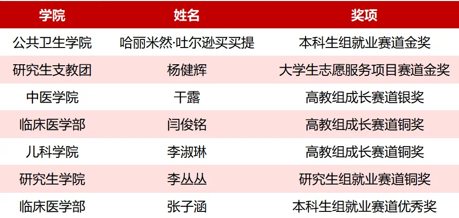 本次大赛自2024年10月启动以来, 学生处、团委、研究生学院精心组织,各学院广泛动员,全校2300余名学子报名参赛。通过“赛前经验分享-学院初赛-校级决赛-省赛集训-模拟路演”五级培养体系,历经3个月的系统打磨,最终选拔出7名优秀选手与全疆49所高校、14个地(州、市)西部计划及“三支一扶”选手同台竞技。新医学子凭借扎实的专业素养、出色的职业规划能力和稳定的现场发挥,在236名参赛者中脱颖而出,充分彰显了“厚植家国情怀、服务健康新疆”的职业担当。