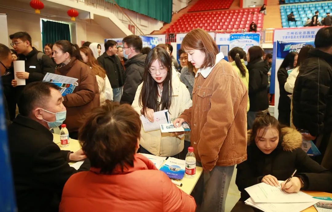 校园双选会上,疆内外各医院、生物医药名企、科研院所等单位同台亮相。安邦(新疆)生物科技有限公司经理陈海华表示:"新医学子专业素养过硬,今年我们早早整理出岗位需求,在看到招聘会邀请函就立刻报名参加了!"