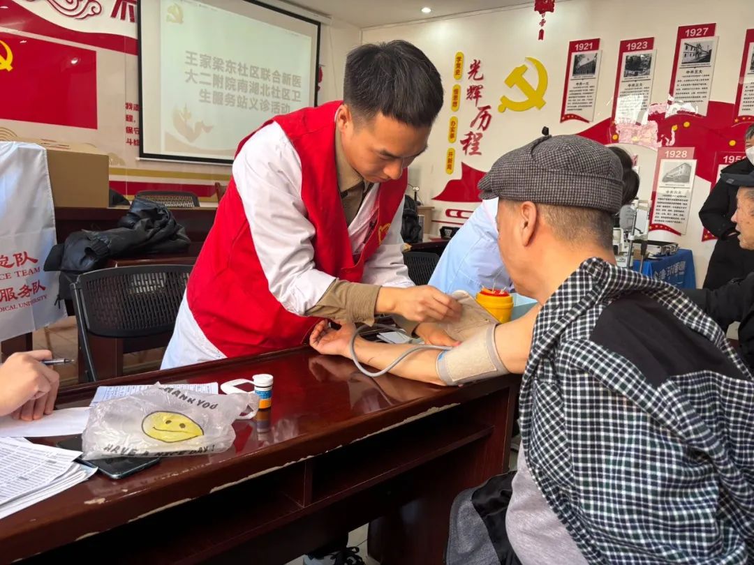 第二附属医院(第二临床医学院)团委带领新医志愿者积极行动,走进新疆军区某干部休养所和王家梁社区医疗服务站,发挥专业优势,为前来就诊的居民提供免费测血压等,提供科普宣讲服务,同时主动入户走访社区内的行动不便的老人。志愿者们还走进校医院开展清洁志愿服务,为患者和医护人员创造了一个舒适、卫生的医疗环境。