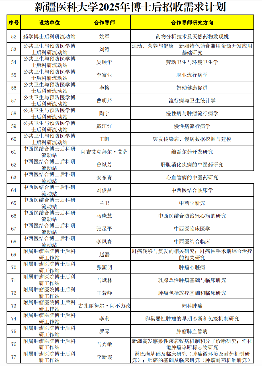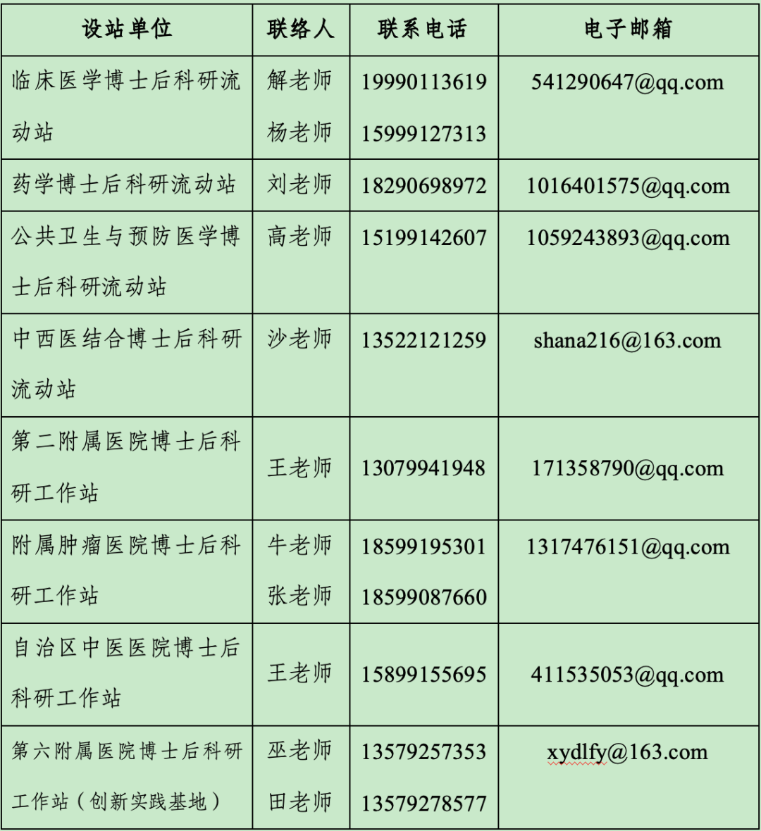 为充分发挥博士后科研流动站服务学科建设、科学研究以及储备师资的作用,根据《beat365中文在线官网博士后管理工作实施细则》有关规定,学校在临床医学、药学、公共卫生与预防医学、中西医结合等四个博士后科研流动站公开招收博士后研究人员,同时在附属肿瘤医院博士后科研工作站、自治区中医医院博士后科研工作站、第二附属医院博士后科研工作站、第六附属医院博士后科研工作站(创新实践基地)联合招收培养博士后研究人员,热忱欢迎有志于谋求发展、共创事业的优秀青年博士加盟beat365。