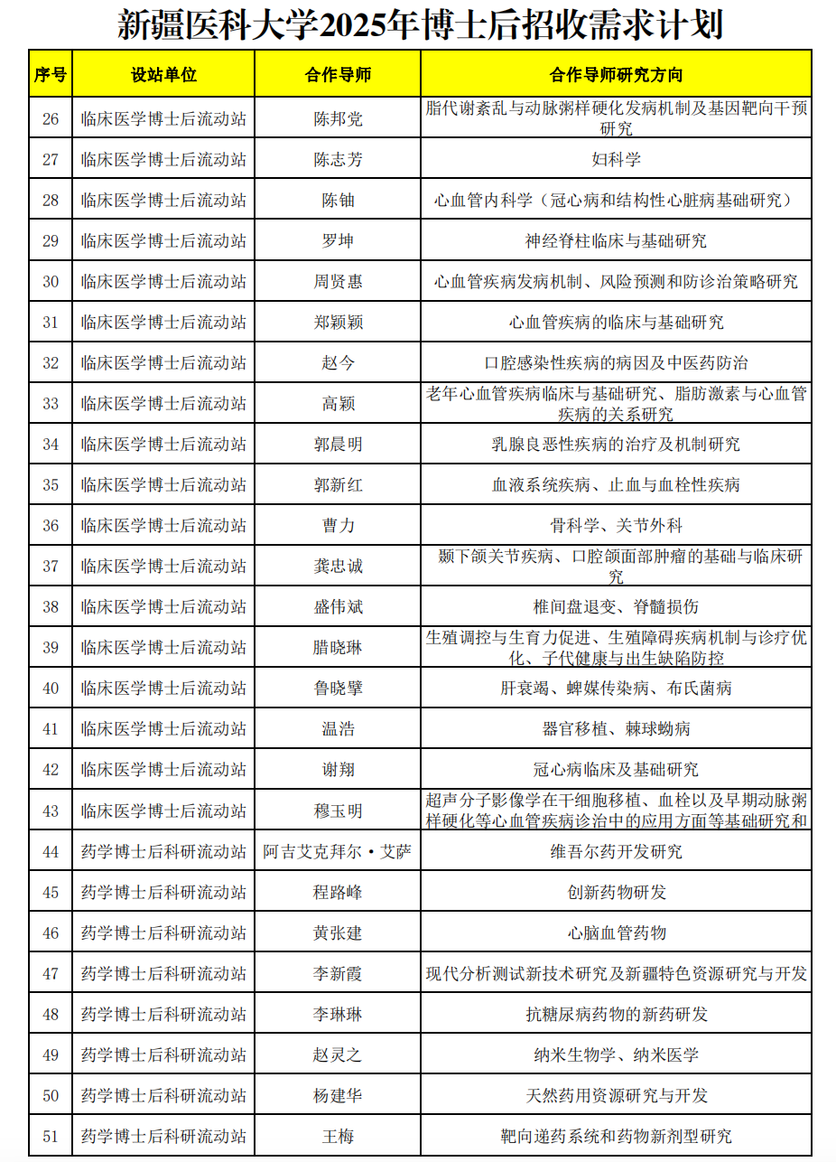 (四)科研支持:提供具有竞争力的科研启动经费。博士后可申报国家“博士创新人才支持计划”、“中国博士后科学基金”、“国家资助博士后研究人员计划”、自治区博士后资助经费,以及国家、自治区各类科研项目。