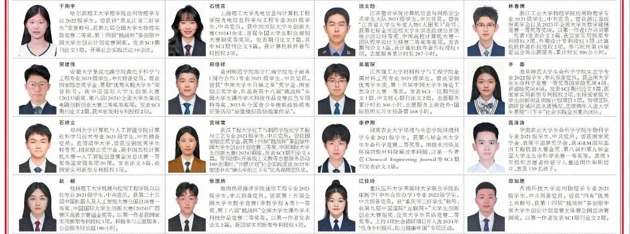 获奖学生代表名录上