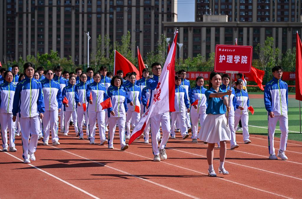 校党委副书记、校长阿吉艾克拜尔·艾萨在致辞时,向运动健儿们送上最诚挚的祝福。他希望全体运动员弘扬奥林匹克精神,以“欲与天公试比高”的豪情突破极限,既要勇攀竞技高峰,更要彰显团结奋进的时代风采。希望裁判团队严守“公开、公平、公正”准则,以“毫厘不失”的专业精神护航赛事。希望全校师生走向运动场,让强健体魄成为终身习惯,让体育精神滋养医者仁心,共同绘就德智体美劳全面发展的育人画卷。