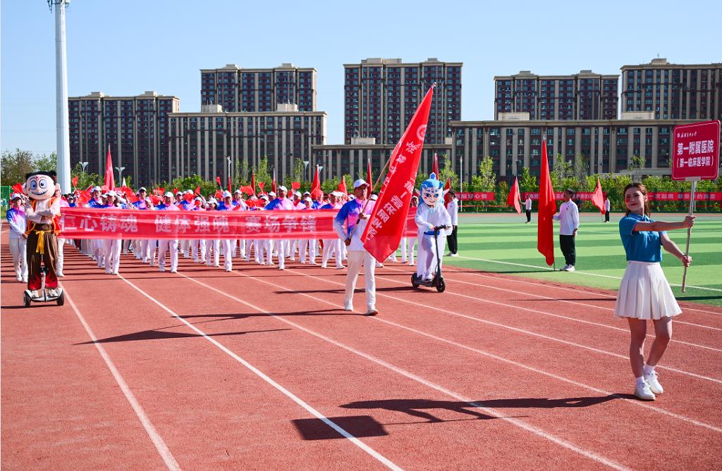 开幕式的团体操表演分“医脉传承”“筑梦青春”“奋进新医”三个篇章