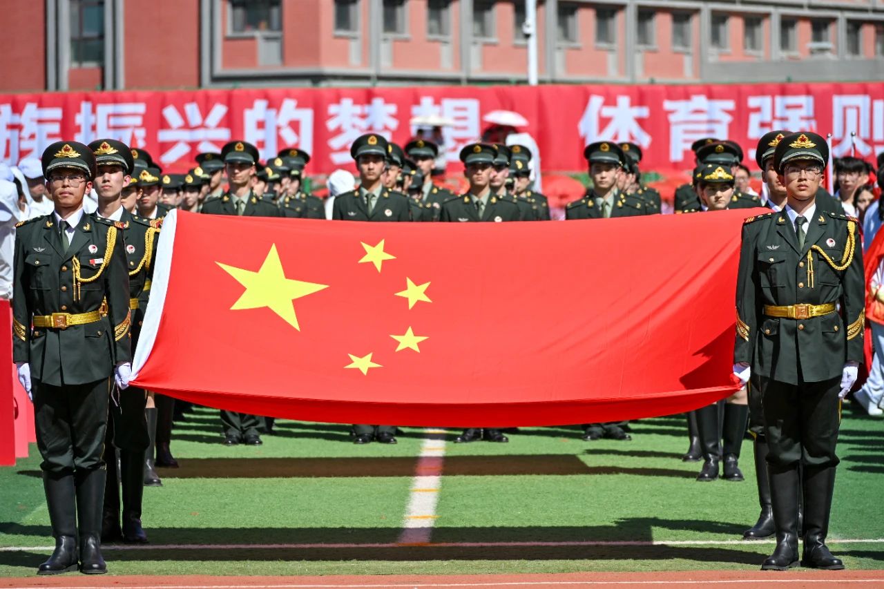 全校师生以昂扬之姿