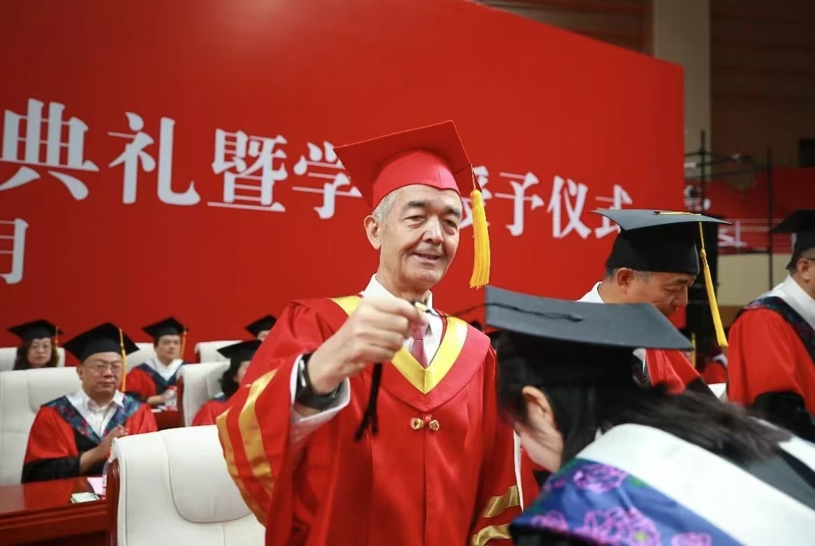 最后,阿吉艾克拜尔·艾萨希望毕业生们始终坚持新医校训、传承新医精神,自觉维护医学职业的真诚、高尚与荣耀,主动践行“敬佑生命、救死扶伤、甘于奉献、大爱无疆”的崇高精神,勇敢启程、向光而行,奔赴祖国最需要的地方施展抱负、建功立业,努力守护人民群众生命健康,争做有情怀、有大爱、有温度的新时代好青年,共同为祖国的卫生健康事业作出新的更大贡献。全体在家校领导、职能部门和学院领导、部分教师,毕业班班主任、辅导员、校外导师代表、学生家长共同参加了毕业典礼。