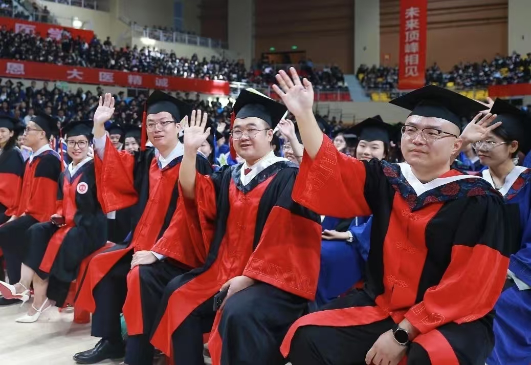 校领导为2025年毕业生代表颁发学位证书,将金色的流苏拨过帽檐,传递着母校对莘莘学子的美好祝福与殷切嘱托。