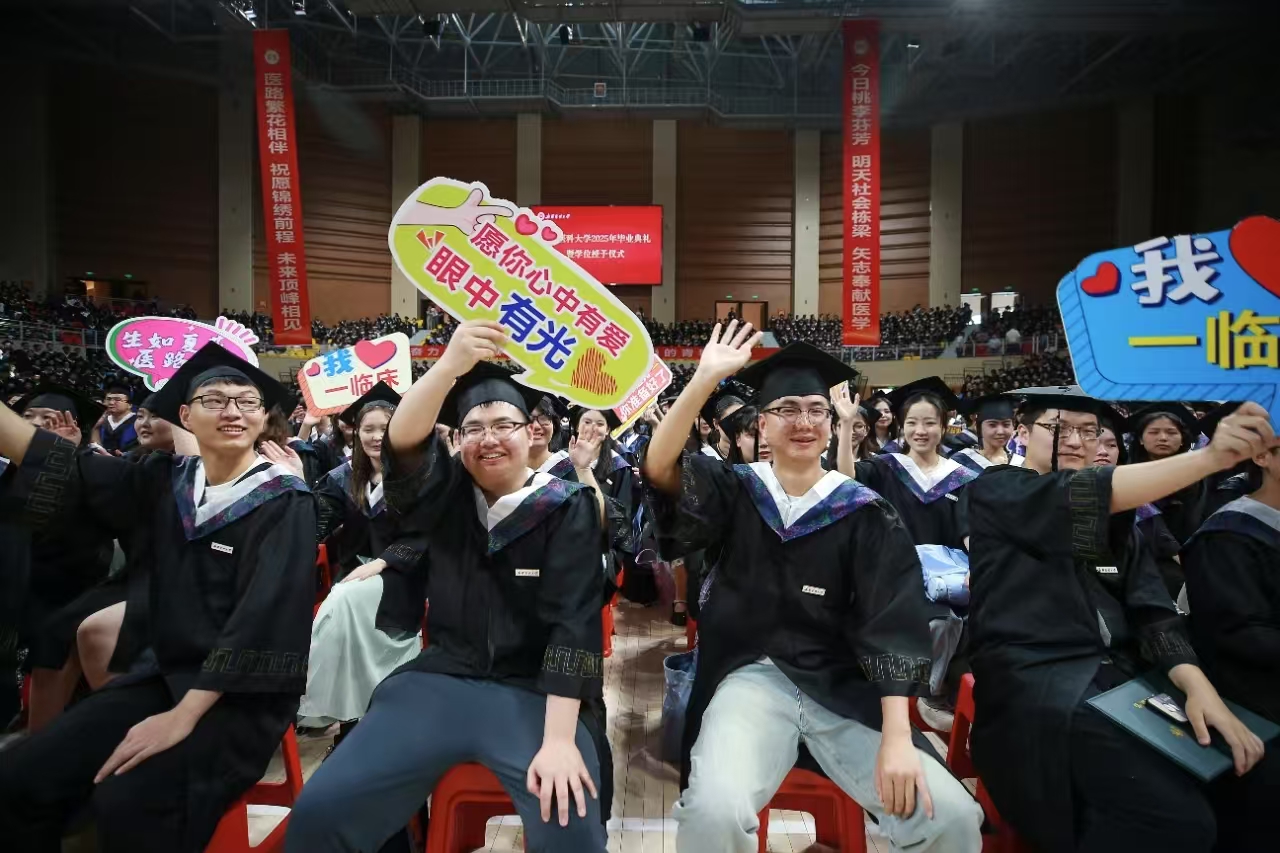在全体老师的共同见证下,副校长刘涛带领2025年毕业生重温《中华人民共和国医学生誓词》,会场内青春涌动、誓言铿锵。从今天起,新医毕业生将坚守承诺,投身祖国医疗卫生事业的广阔天地,在守护人民健康的新征程上勇毅前行、再谱华章。