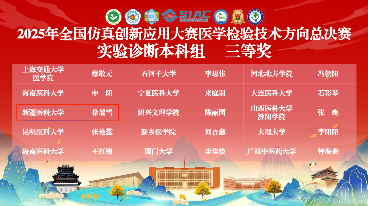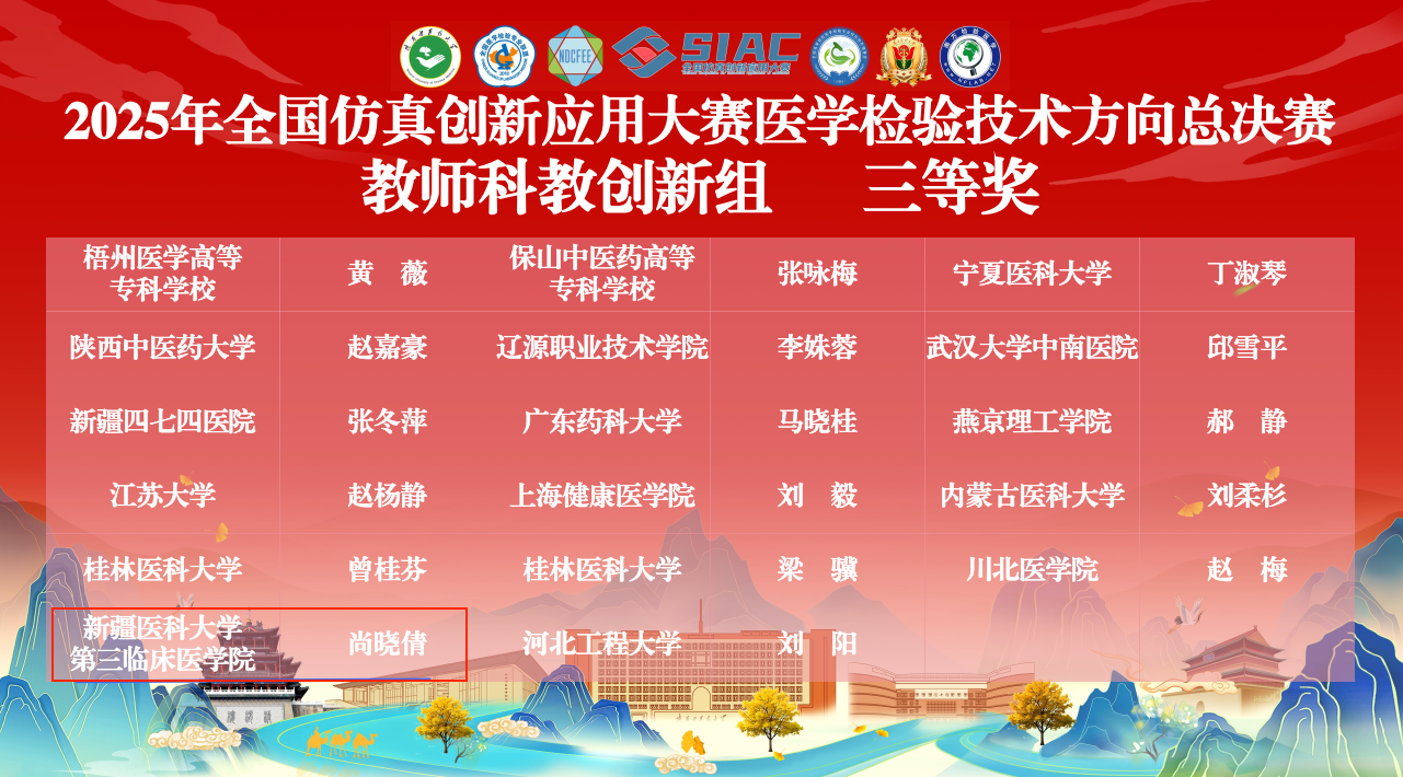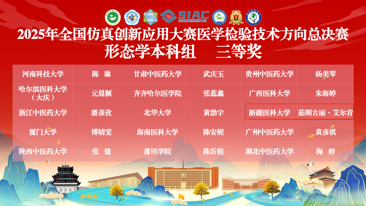 beat365中文在线官网师生团队在全国仿真创新应用大赛中表现优异,喜获多项重要奖项,充分体现了beat365重视医学教育改革、强化学生实践能力与创新精神培养的显著成果。今后,学校将始终坚持“以赛促学、以赛促教、以赛促创、以赛育人”理念,将创新能力的培养深度融入教育教学全过程和各环节,着力提升人才培养质量,为服务区域经济社会发展、推进健康新疆建设贡献坚实的“新医力量”。