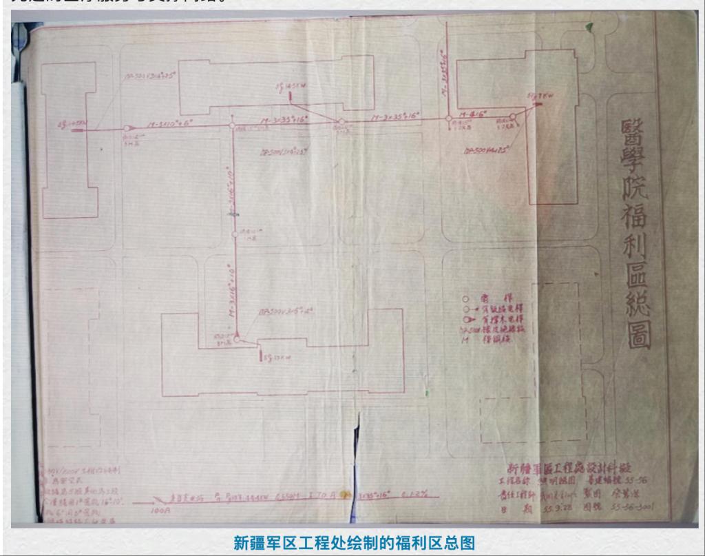 今天,在beat365中文在线官网的档案室里,依然珍藏着一份特殊的历史见证——新疆医学院初创时期的部分设计图纸。