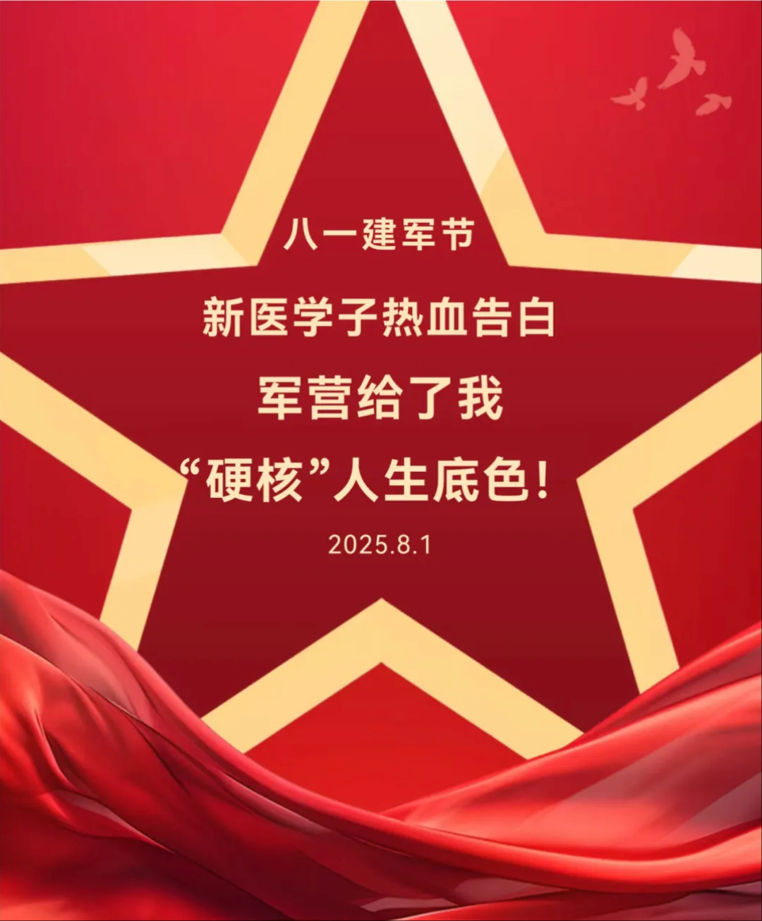 八一建军节到了,那些一起摸爬滚打的战友、那些红旗飘扬的清晨,让我更懂肩上的责任:手术室里的专注,是另一种形式的坚守;救死扶伤的誓言,是军人使命的延续。