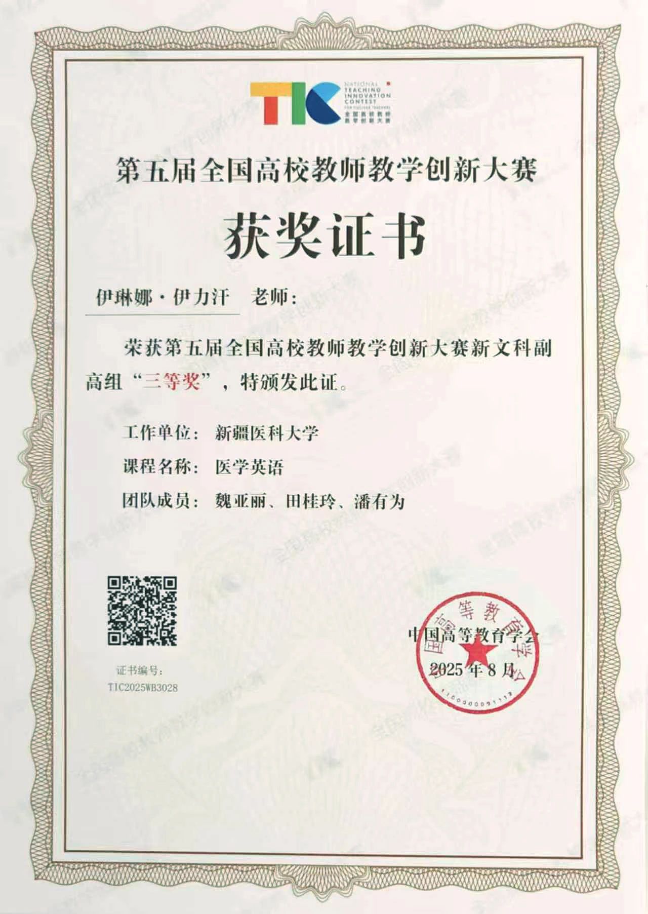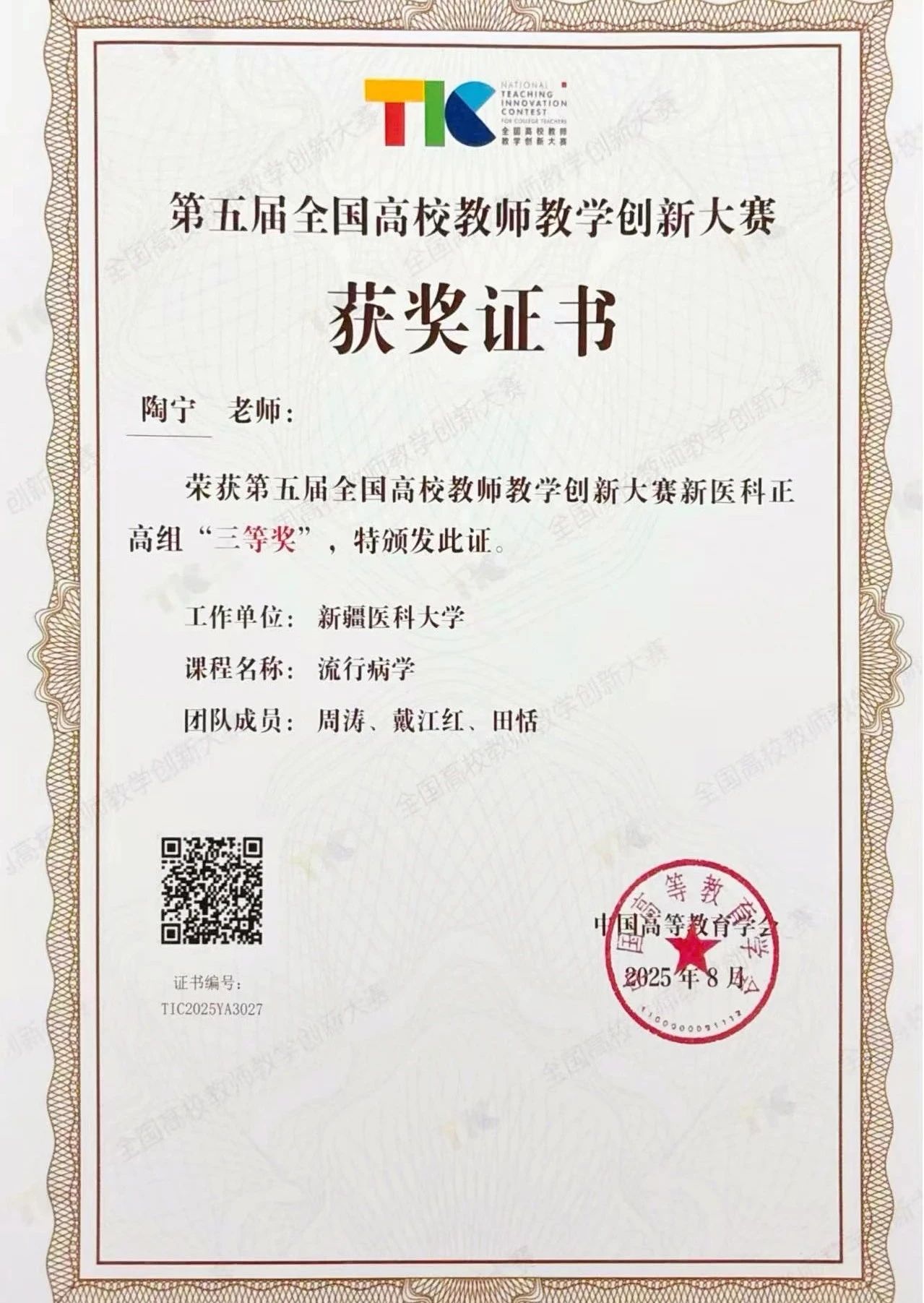 8月16日至19日,由教育部高等教育司指导、中国高等教育学会主办的第五届全国高校教师教学创新大赛全国赛在北京理工大学顺利举办。beat365中文在线官网公共卫生学院陶宁教授团队与人文学院伊琳娜·伊力汗副教授团队分别获新医科正高组与新文科副高组三等奖。