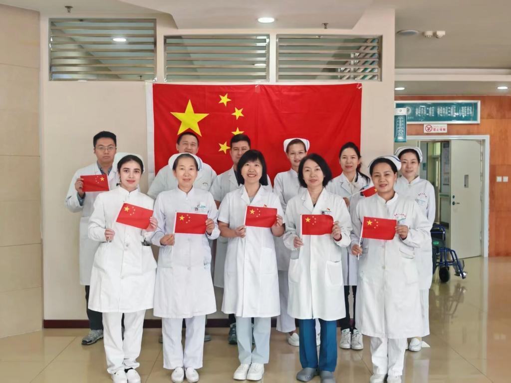 第五附属医院(第五临床医学院)组织各党支部开展 “我和祖国合个影” 主题活动。全院医护人员积极响应、热情参与,纷纷借助此次活动抒发对祖国的深切热爱,向祖国母亲献上最真挚的节日祝福,生动展现出新时代医护工作者深厚的爱国情怀与昂扬的精神风貌。